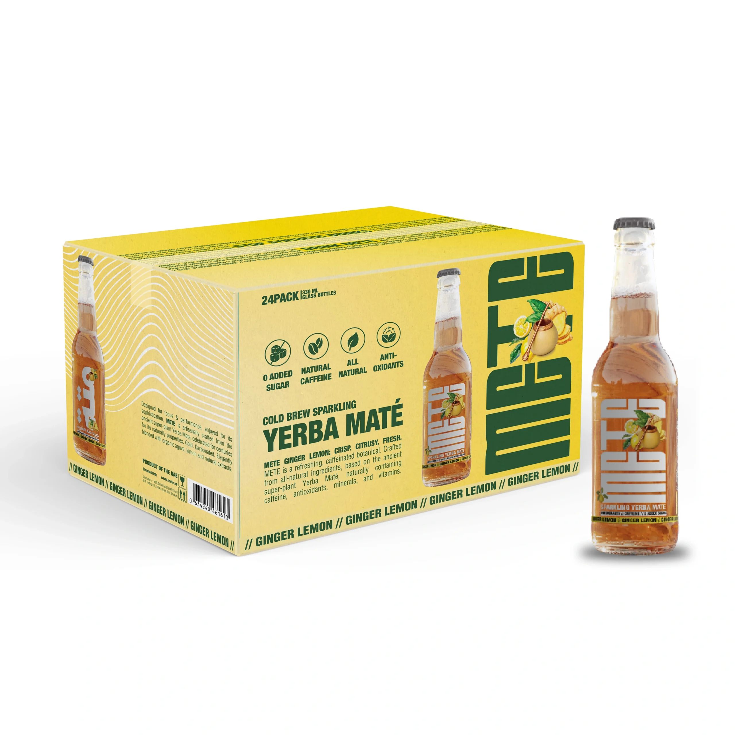 At its core, METE Ginger is powered by Premium Yerba Maté, a legendary superleaf. Our high-precision infusion of Yerba Mate & Guaranà packs this drink with natural caffeine, xanthines, electrolytes, antioxidants, and vitamins, designed for focus & energy, hydration, gut wellbeing, and sports recovery. Our proprietary brewing process ensures maximum flavor extraction and bioavailability while preserving the full benefits of Yerba Maté. The result? A smooth yet intense taste that fuels you with clean, long-lasting energy.